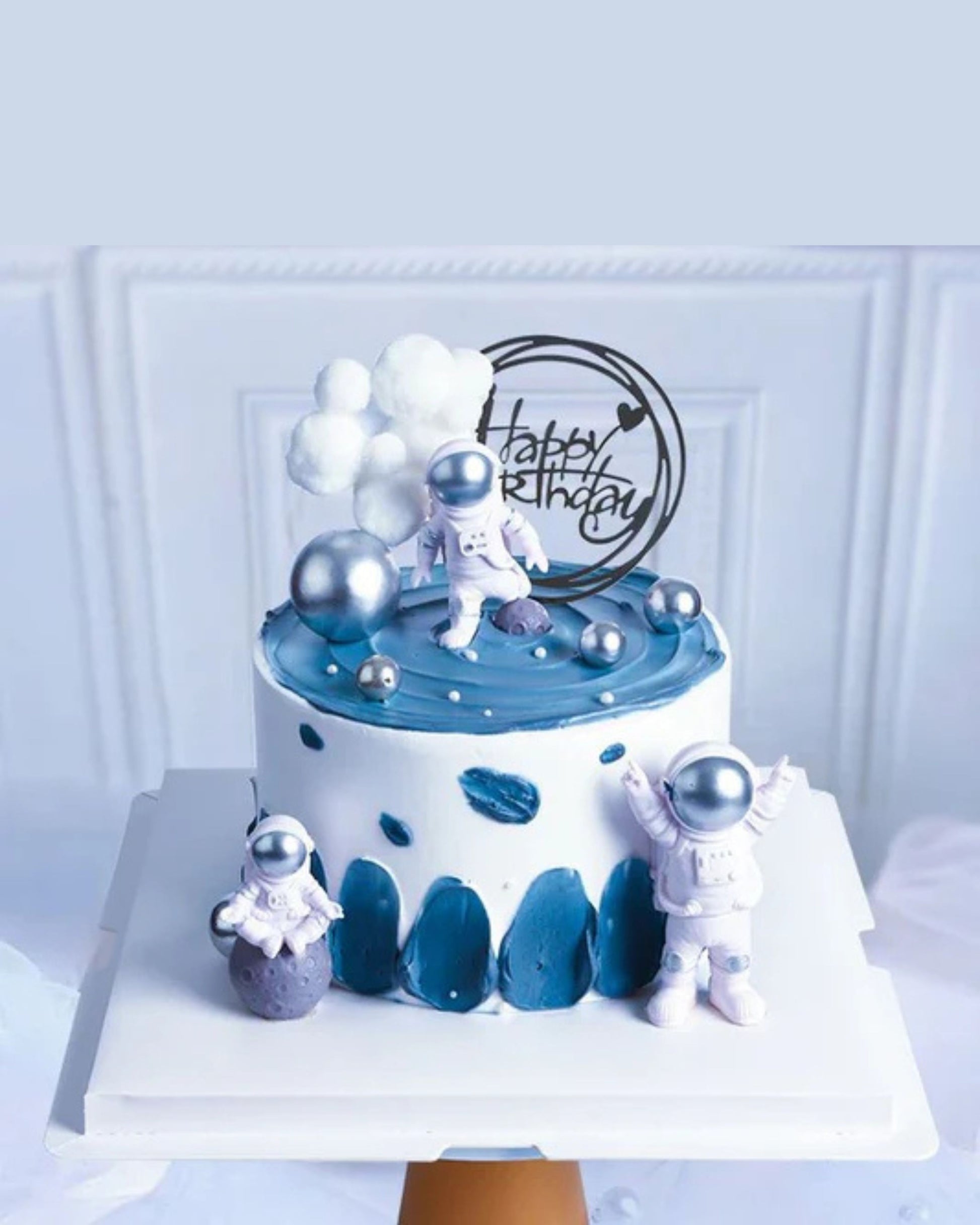 Blast off into a world of flavor with our Astronaut Theme Cake! Designed to ignite imaginations and taste buds alike, this cosmic creation features a handcrafted fondant astronaut exploring a galaxy of stars, planets, and shimmering edible stardust. Layers of moist cake—available in chocolate, vanilla, or your favorite flavor—are filled with rich buttercream or ganache and wrapped in smooth outer space-blue fondant.