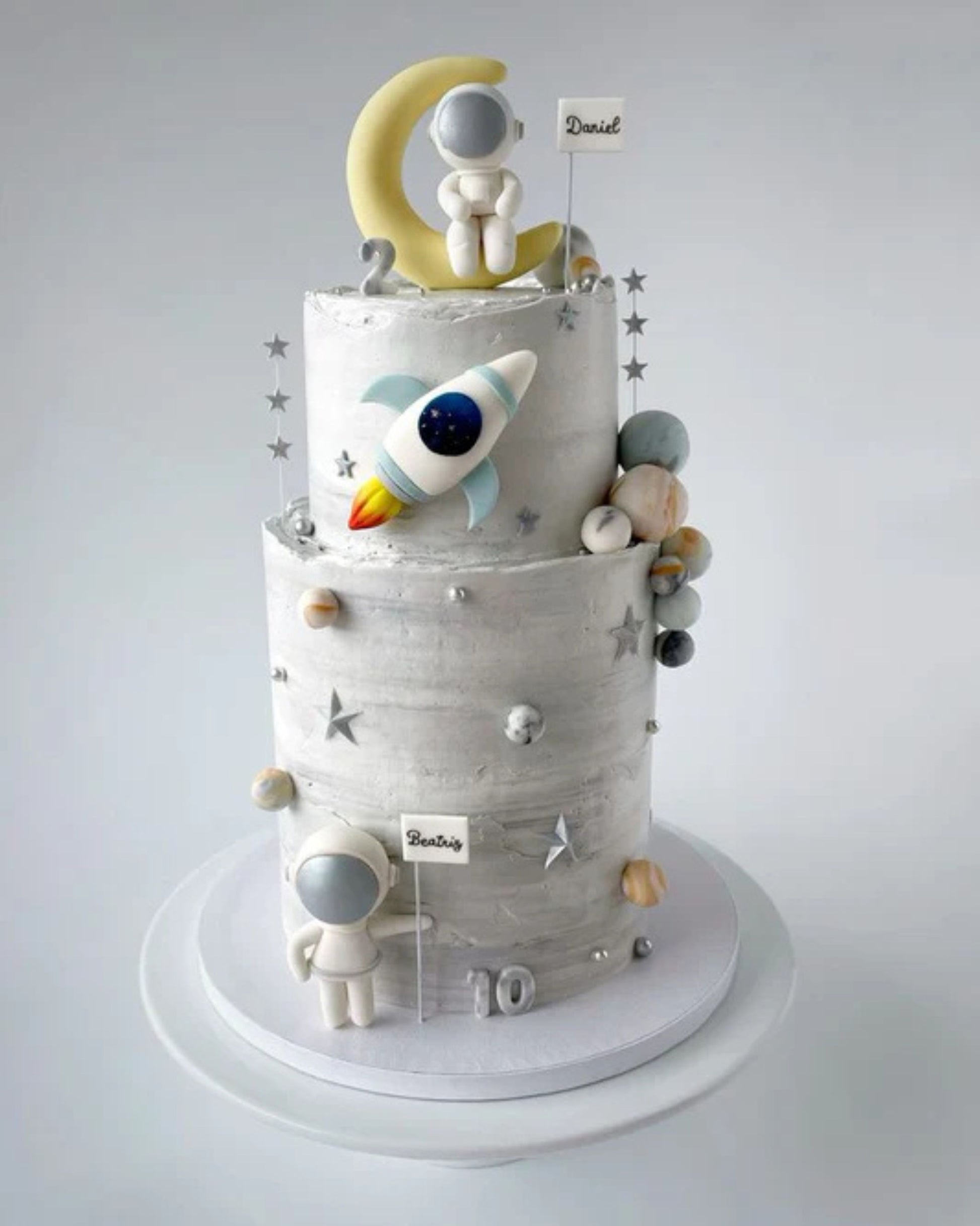 Blast off into a world of flavor with our Astronaut Theme Cake! Designed to ignite imaginations and taste buds alike, this cosmic creation features a handcrafted fondant astronaut exploring a galaxy of stars, planets, and shimmering edible stardust. Layers of moist cake—available in chocolate, vanilla, or your favorite flavor—are filled with rich buttercream or ganache and wrapped in smooth outer space-blue fondant.
