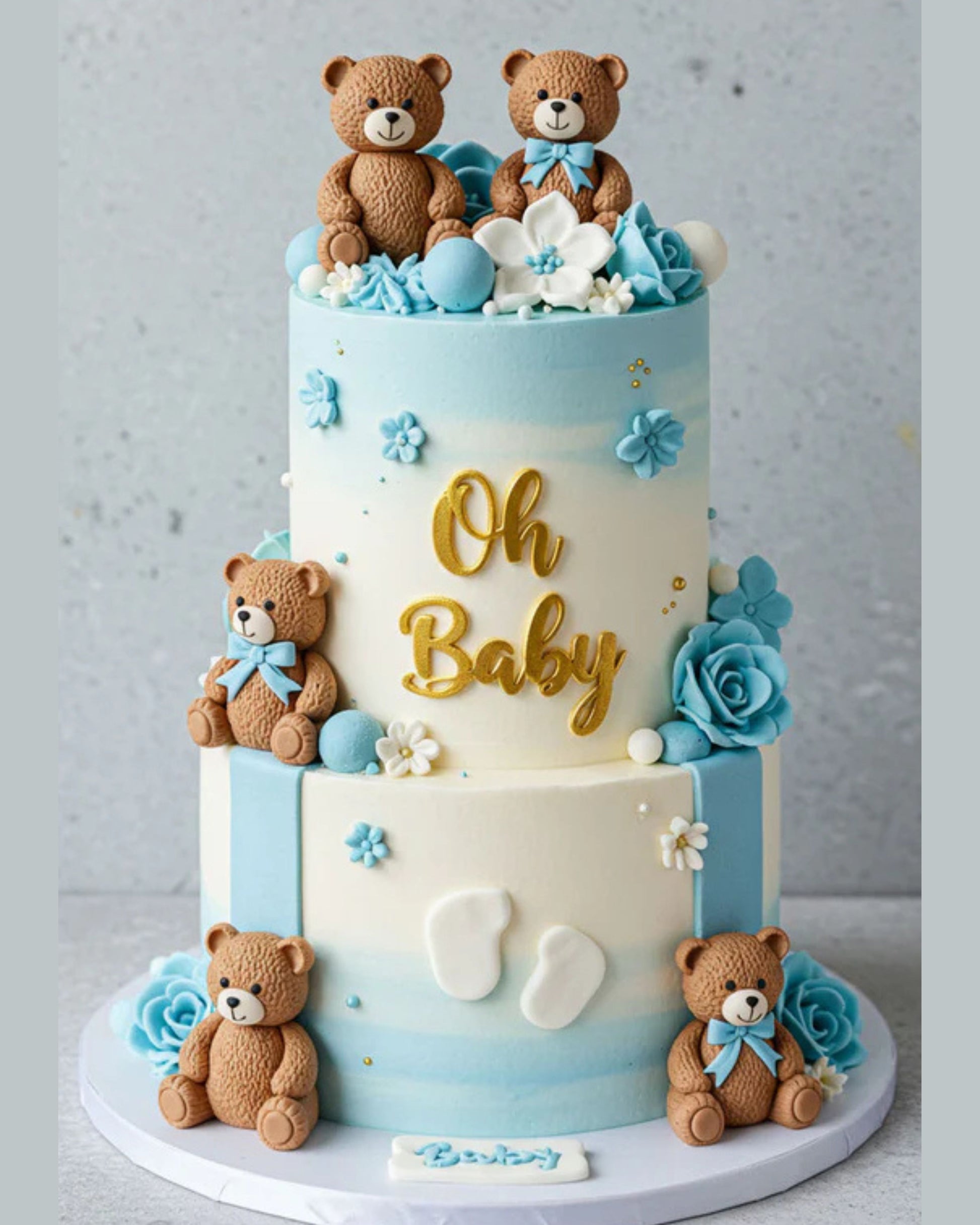 Celebrate your little prince very first milestone with this adorable baby boy 1st birthday cake! Designed with soft pastel blues and charming baby-themed decorations, this cake is as sweet as your bundle of joy.