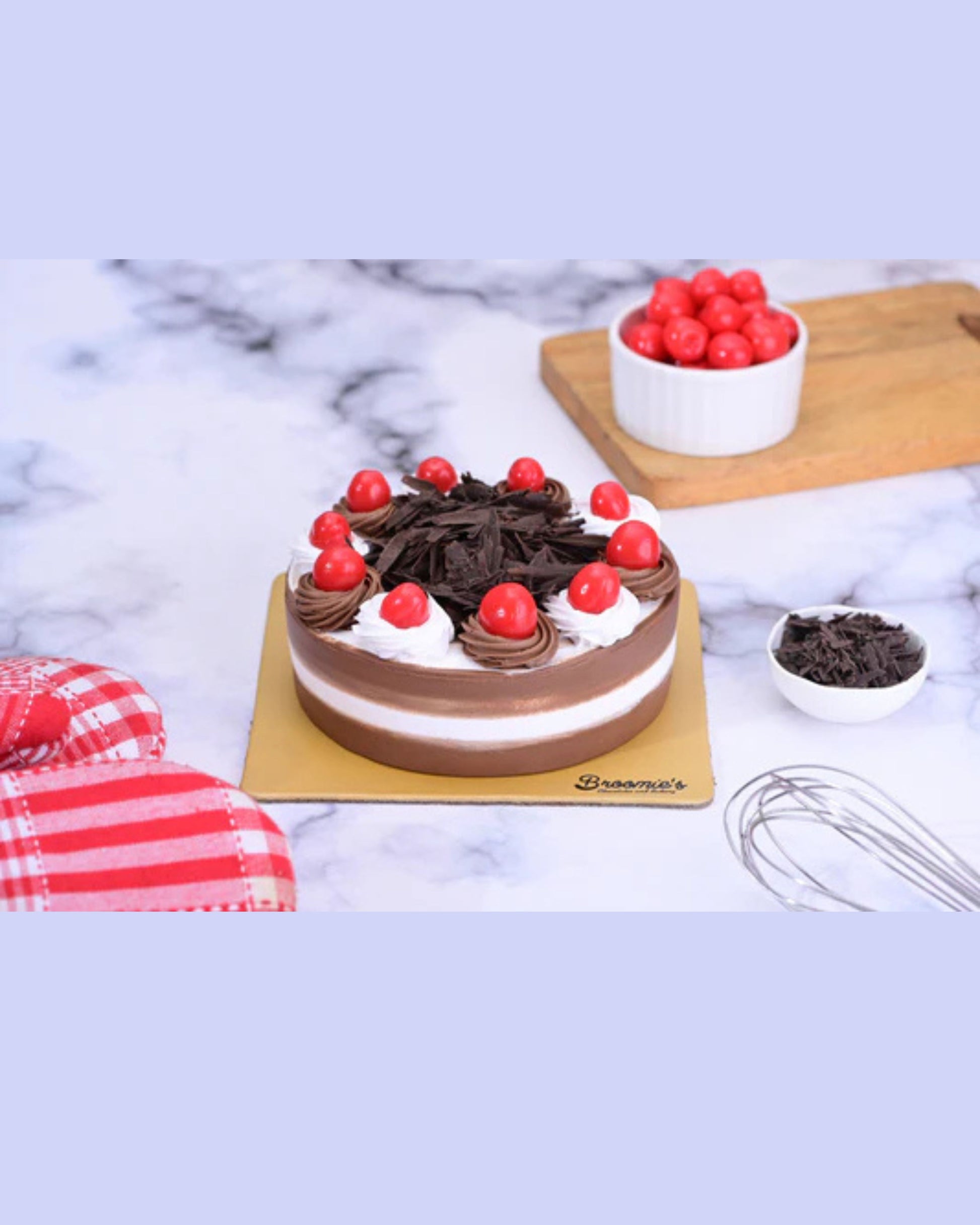 Black Forest Cake is a classic German dessert known for its rich layers and delicious flavors. It typically consists of multiple layers of light, moist chocolate sponge cake, generously filled with whipped cream and cherries. The cake is often decorated with more whipped cream, maraschino cherries, and chocolate shavings or curls.