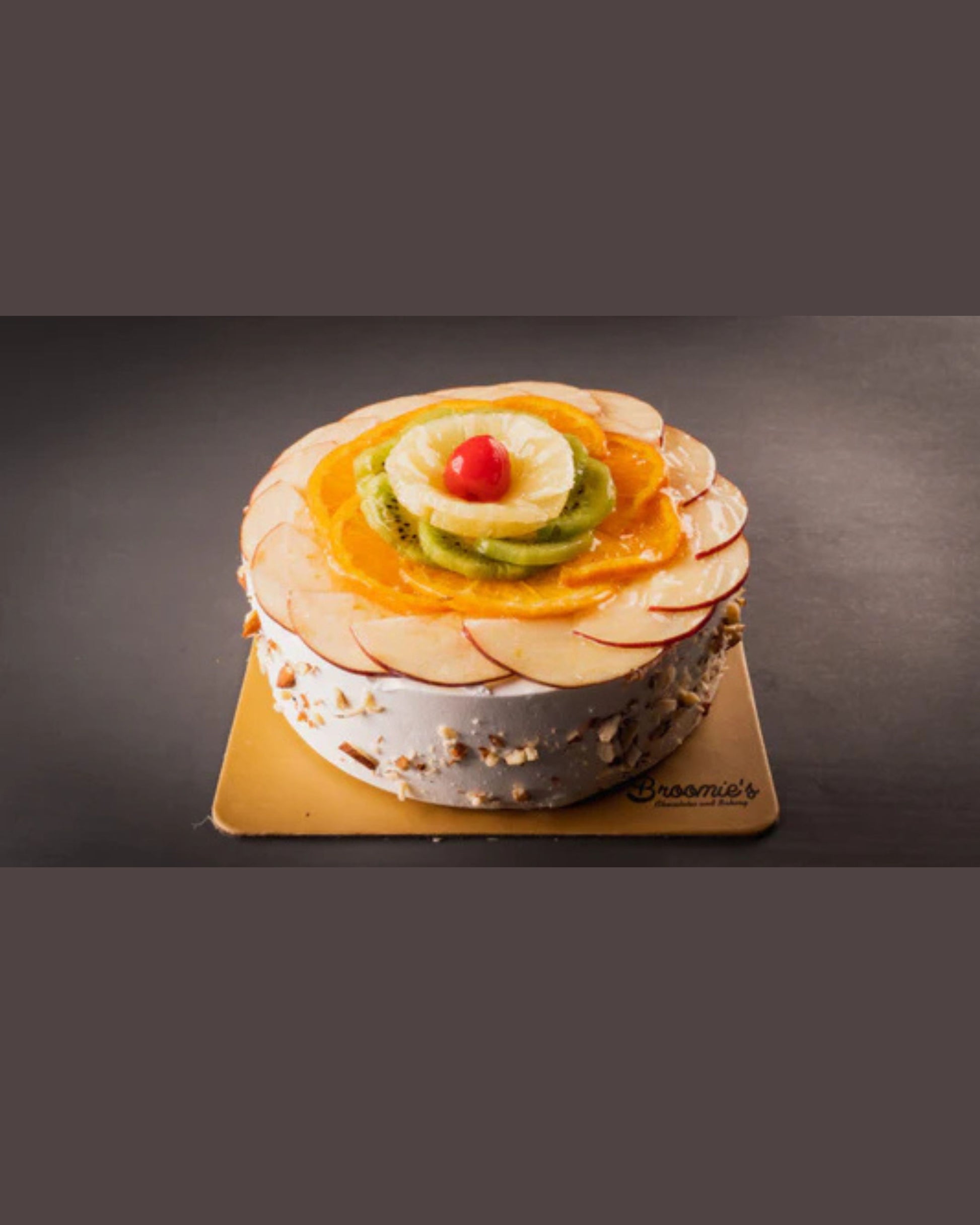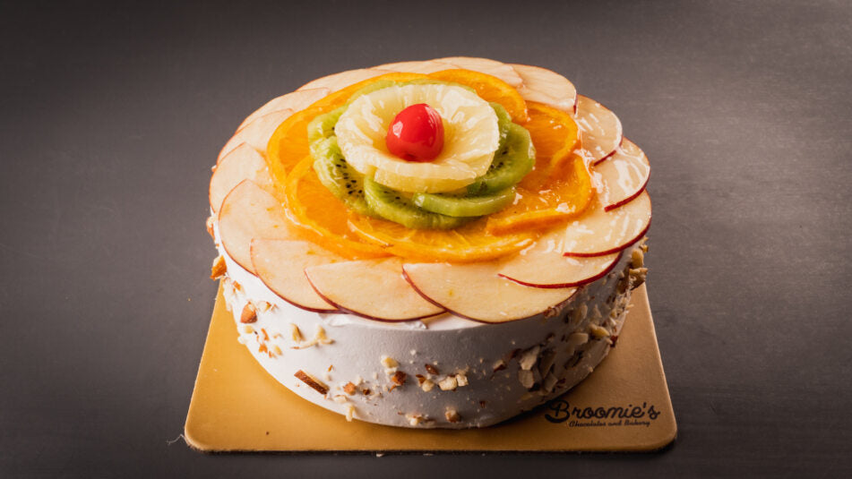 Indulge in a delightful fusion of light, fluffy sponge cake layered with velvety whipped cream and topped with a vibrant medley of seasonal fruits. Each bite bursts with the natural sweetness of fresh strawberries, kiwis, blueberries, and mangoes, perfectly complementing the soft, airy texture of the cake.