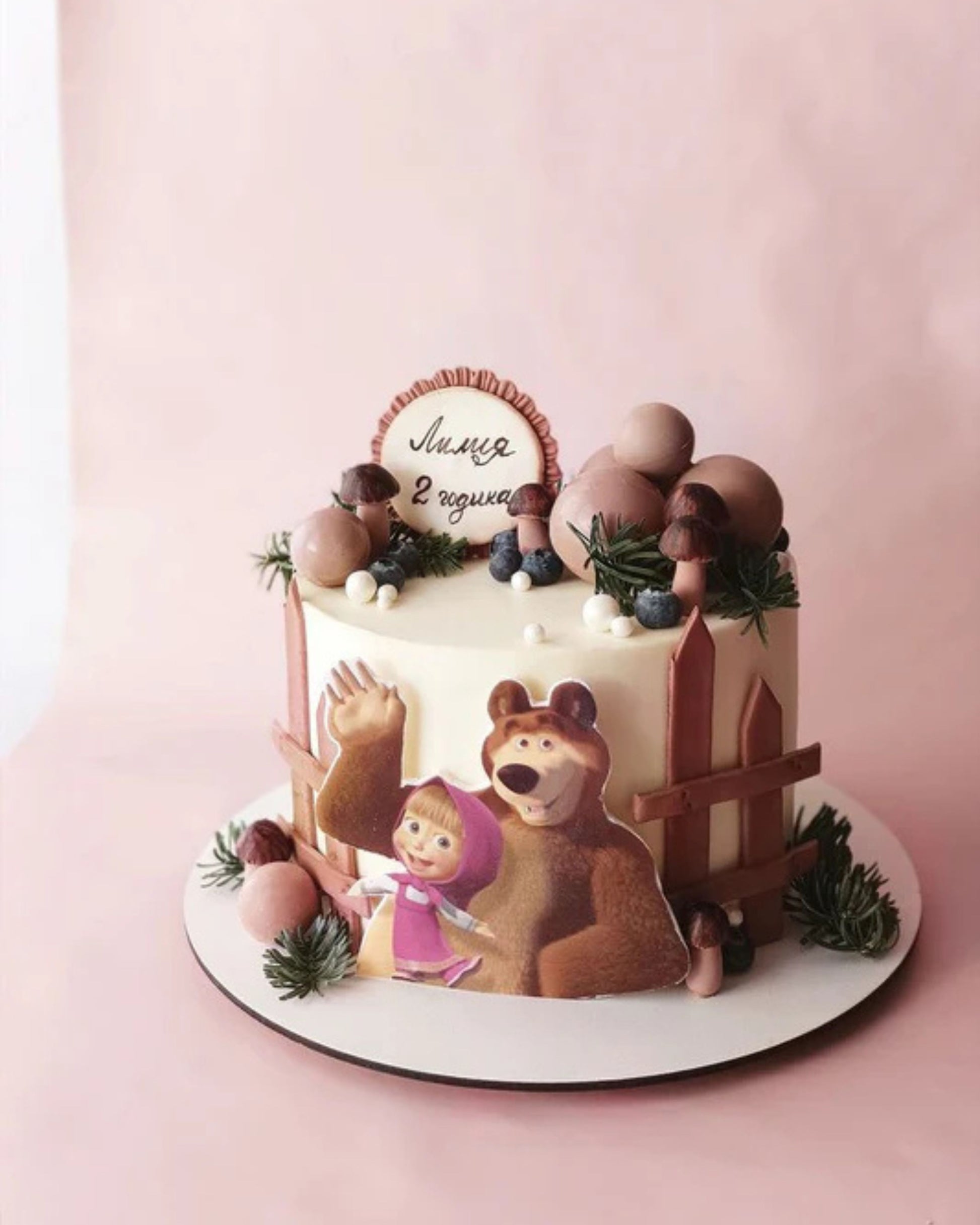 This charming cake is inspired by the beloved characters from the animated show, Masha and the Bear. The cake is designed to be fun and playful, with vibrant colors and adorable details that capture the essence of the show.