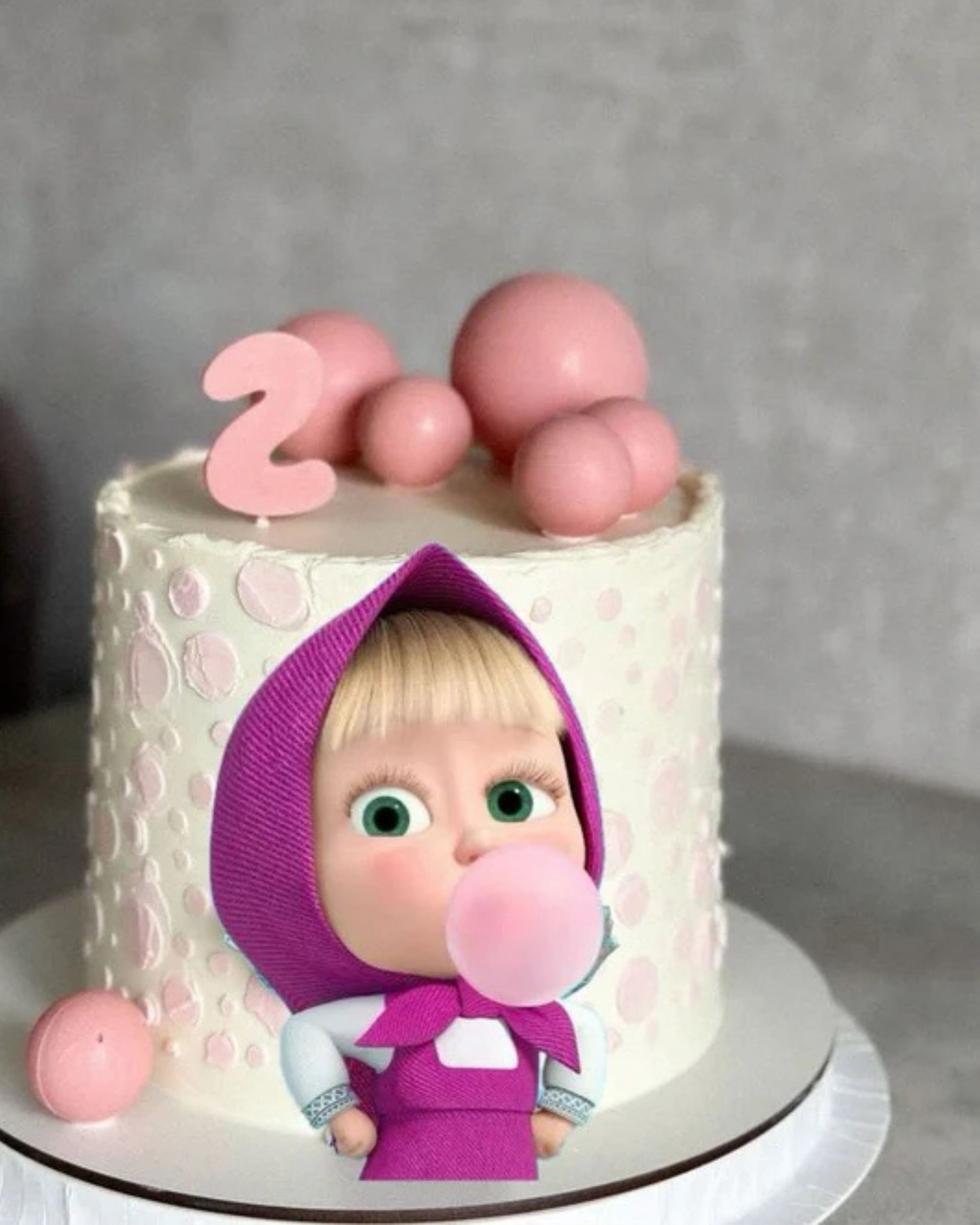 This charming cake is inspired by the beloved characters from the animated show, Masha and the Bear. The cake is designed to be fun and playful, with vibrant colors and adorable details that capture the essence of the show.