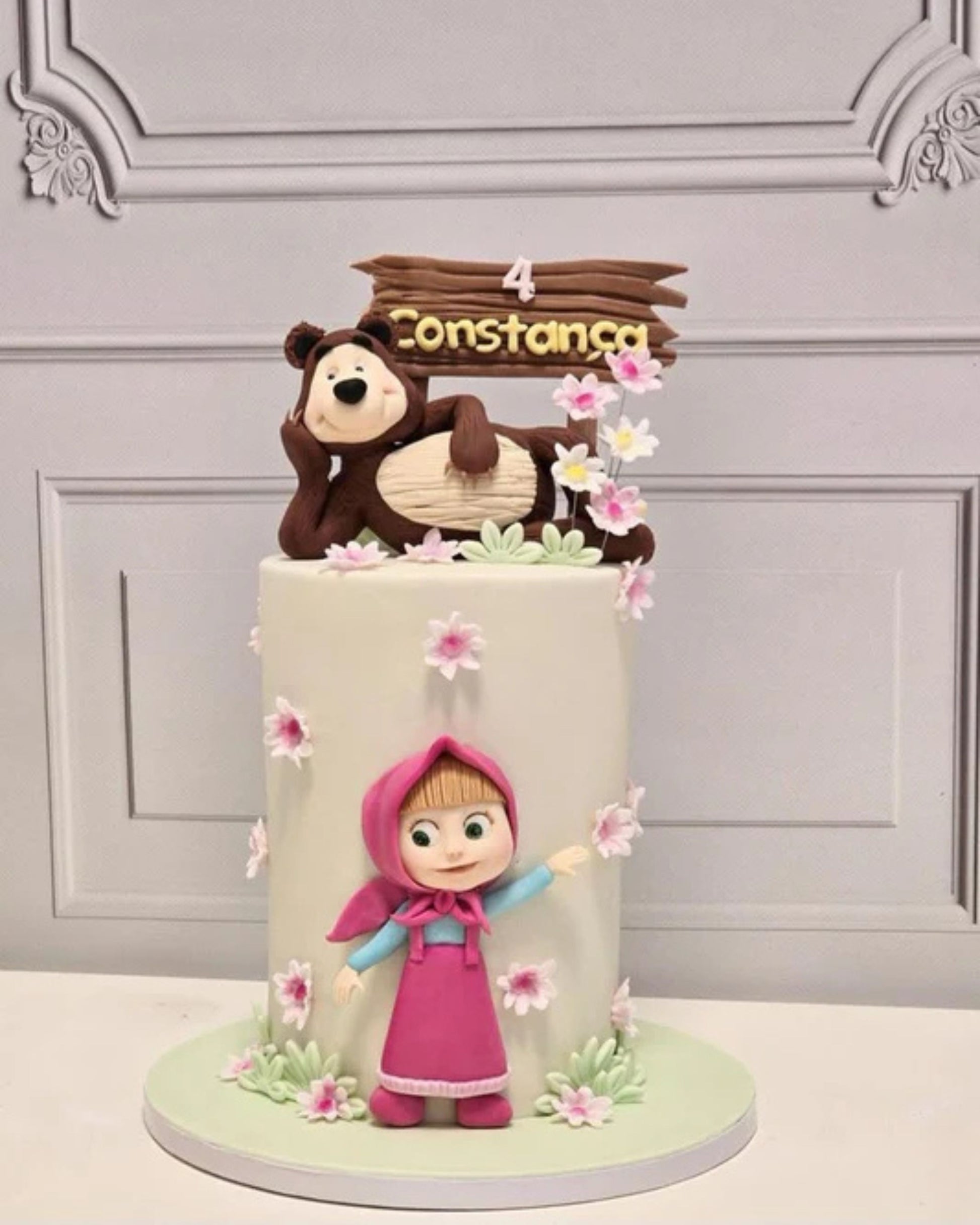 This charming cake is inspired by the beloved characters from the animated show, Masha and the Bear. The cake is designed to be fun and playful, with vibrant colors and adorable details that capture the essence of the show.