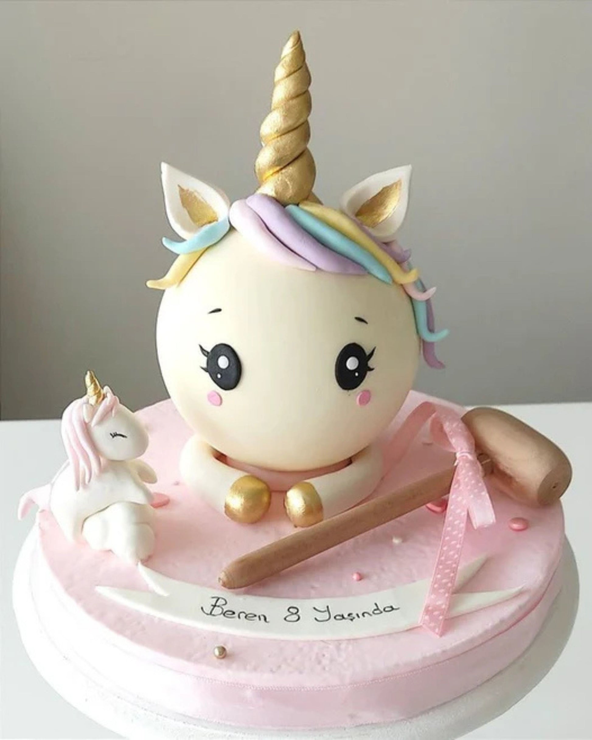 A magical treat bursting with surprise! This whimsical unicorn-shaped (or unicorn-themed) cake features layers of moist vanilla (or your choice of flavor) sponge, filled with colorful sprinkles, candy, and mini chocolates hidden inside — just like a piñata! Decorated with dreamy pastel buttercream, a shimmering golden horn, and hand-piped rosettes for the mane, this cake is both a showstopper and a crowd-pleaser. Perfect for birthdays, celebrations, or anyone who believes in a little magic and sparkle.